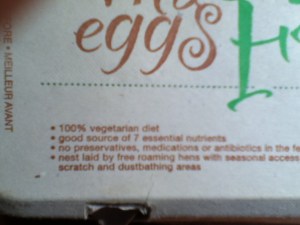 One more thing though is that “vegetable grain” is on the label like it’s a great fact. I’ve seen it on not just chicken meat packages, for example, but also egg cartons. I’ve also seen “100% vegetarian” on egg cartons even from free run chickens from large producers.